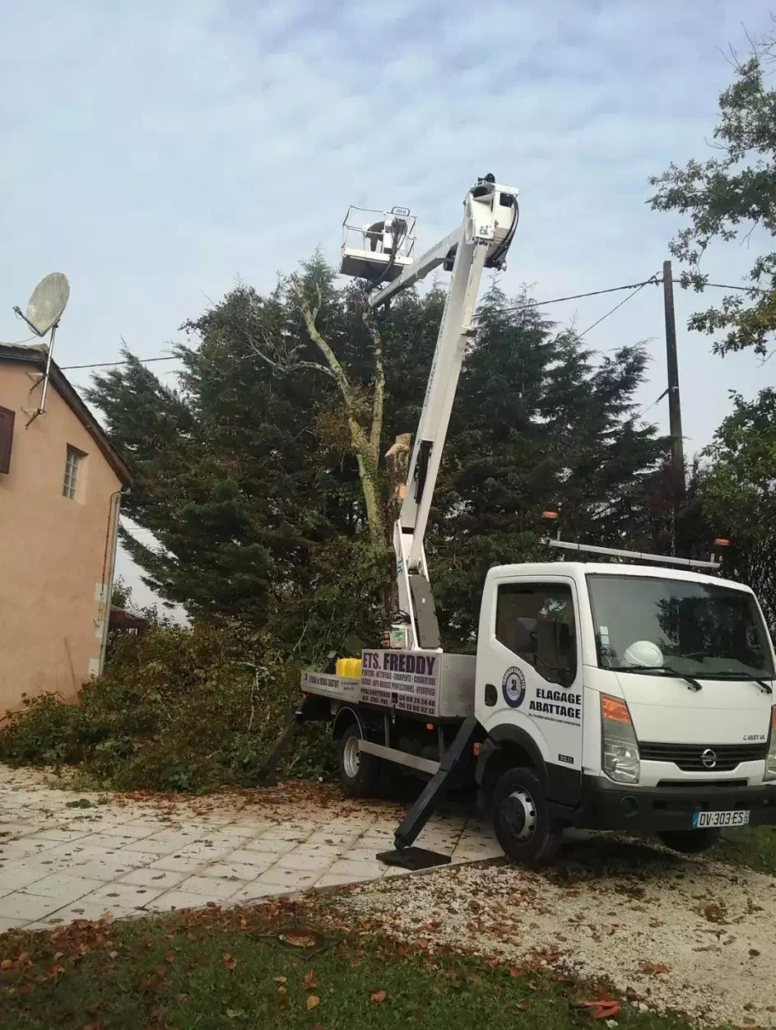Notre entreprise est équipée d’un camion nacelle afin de vous garantir un travail de qualité réalisé dans le respect des normes de sécurité. Nous prenons également en charge le débitage, le broyage et l’évacuation de vos déchets végétaux.
